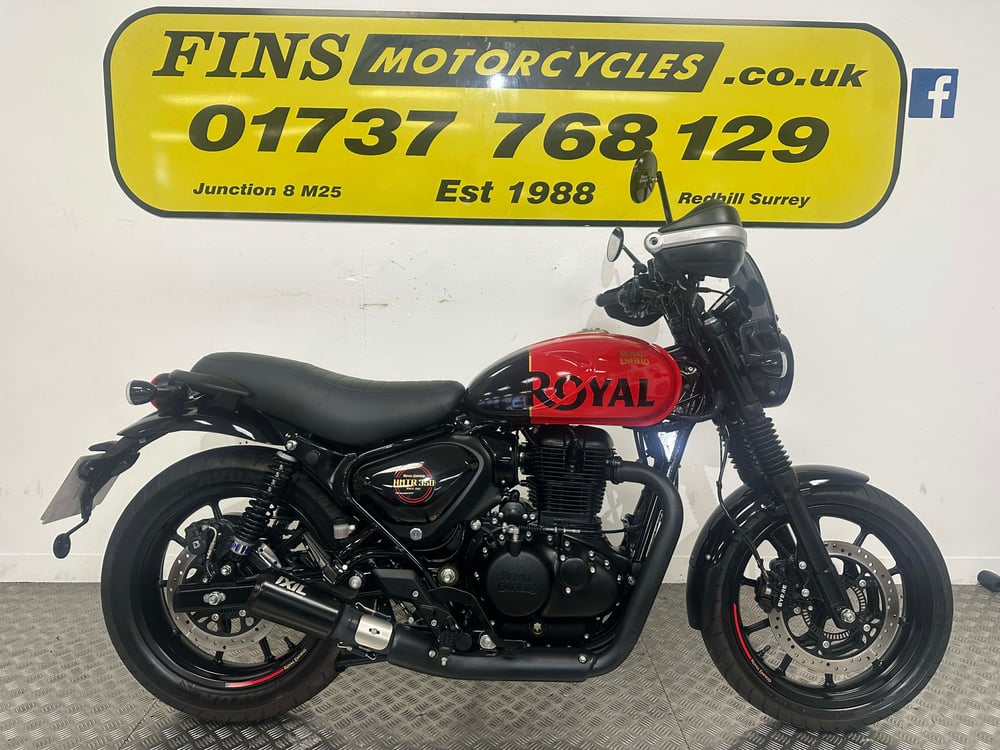 Fins Motorcycles are pleased to present this 2023 Royal Enfield Hunter 350 for sale with only 1787 miles on the clock. One owner from new. Low mileage, 2 keys, Owners manual present, 1st service & valve check has been logged in the service book at 489 miles. Comes with a center stand, ABS, Hagon shocks, Handguards, Heated grips, Adjustable levers and an IXIL exhaust. Overall the bike is in lovely condition. Please see photos and Youtube video provided. PX welcome, Finance available, We can arrange nationwide delivery.
