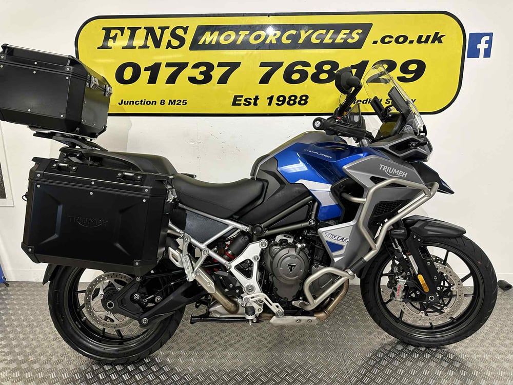 Fins Motorcycles are pleased to present this lovely 2023 Triumph Tiger 1200 GT Explorer for sale with 6479 miles on the clock. Service history, The bike will receive a service and safety check by us when the bike sells, ABS, Tyres in good condition, Panniers and top box, Engine bars, Spot lamps, Center stand, Handguard, Brembo calipers, Cruise control, Heated grips, Keyless ignition, Heated seat, Finance available, PX welcome, We can arrange nationwide delivery.